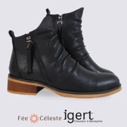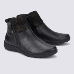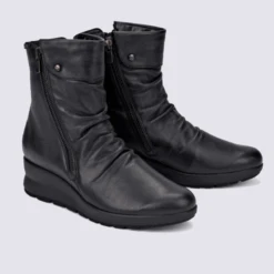 Bottines Mobils, Bottines Confortables Femme En Cuir Lisse Noir