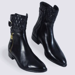 Bottines Moda Di Fausto, Bottines à Glissière Femme En Cuir Noir