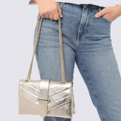 Sac Bandoulière Hexagona, Sac Bandoulière Compartiment Spacieux Femme En Cuir De Vachette Doré