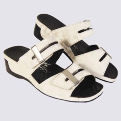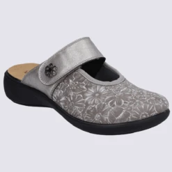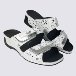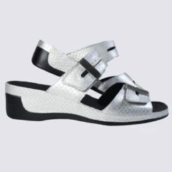 Mules Vital, Mules Ouvertes Compensées à Velcro écailles Métallisées Femme En Cuir Argent