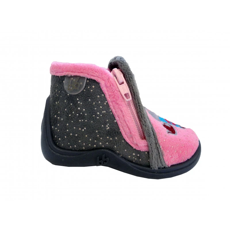 Pantoufle en en feutre couleur rose avec fermeture Ă©clair, motif fille semelle intĂ©rieure cuir amovible pour une meilleure hygiène semelle avec voute interne et renfort postĂ©rieur pour un meilleur maintien du pied de l’enfant. Made in France.