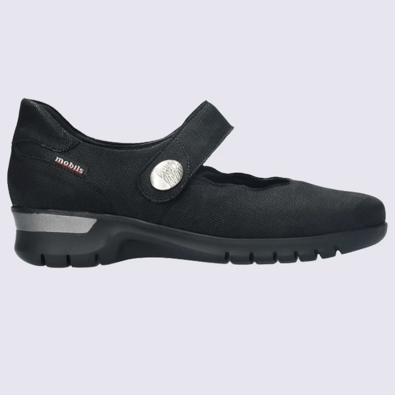 Cette ballerine de la marque Mobils se distingue par sa légèreté, assurant une sensation de marche agréable tout au long de la journée. Elle est équipée d’une semelle intérieure amovible intégrant la technologie SOFT-AIR, qui réduit les impacts au minimum, offrant un confort supérieur. La semelle extérieure est dotée du SHOCK-ABSORBER pour une marche souple et sans fatigue. Découvrez toute la collection Mobils sur igert.fr !