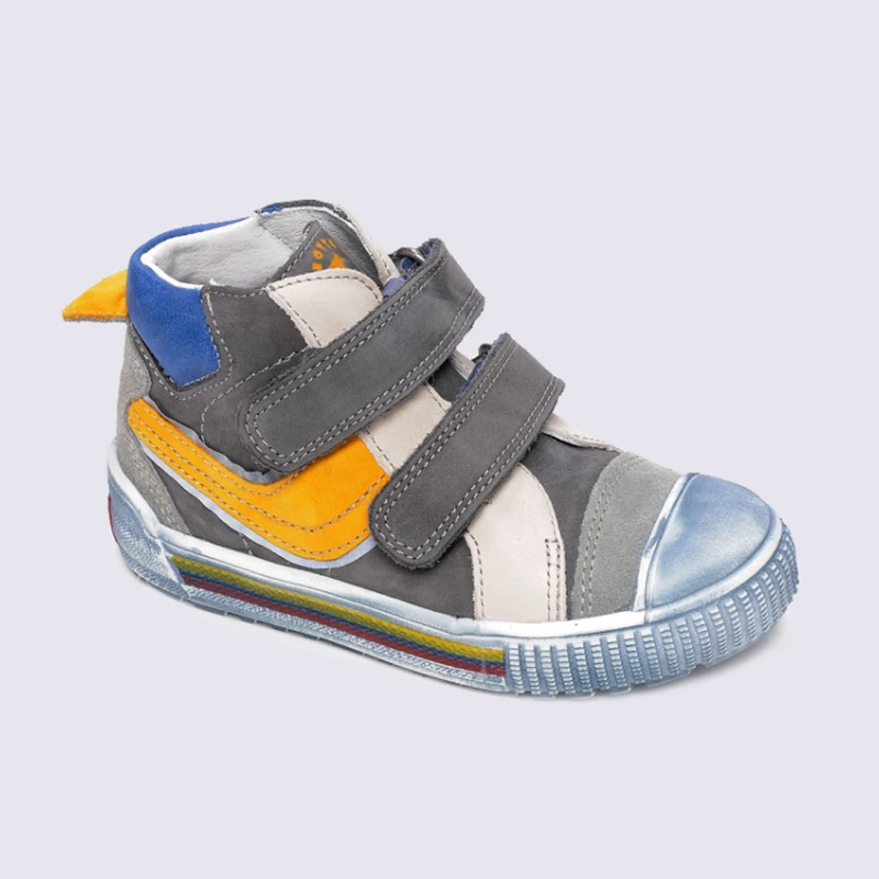 Chaussure de la marque Babybotte Ouverture par glissière avec lacets décoratifs Semelle intérieure amovible en cuir Renforts gomme à l’avant de la chaussure Bandes réfléchissantes sur le côté Composition : cuir Livraison gratuite Référence : Kamping gris