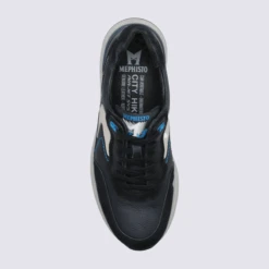 Basket Mephisto, Basket Confortable Et élégante Homme En Cuir Marron Et Bleu