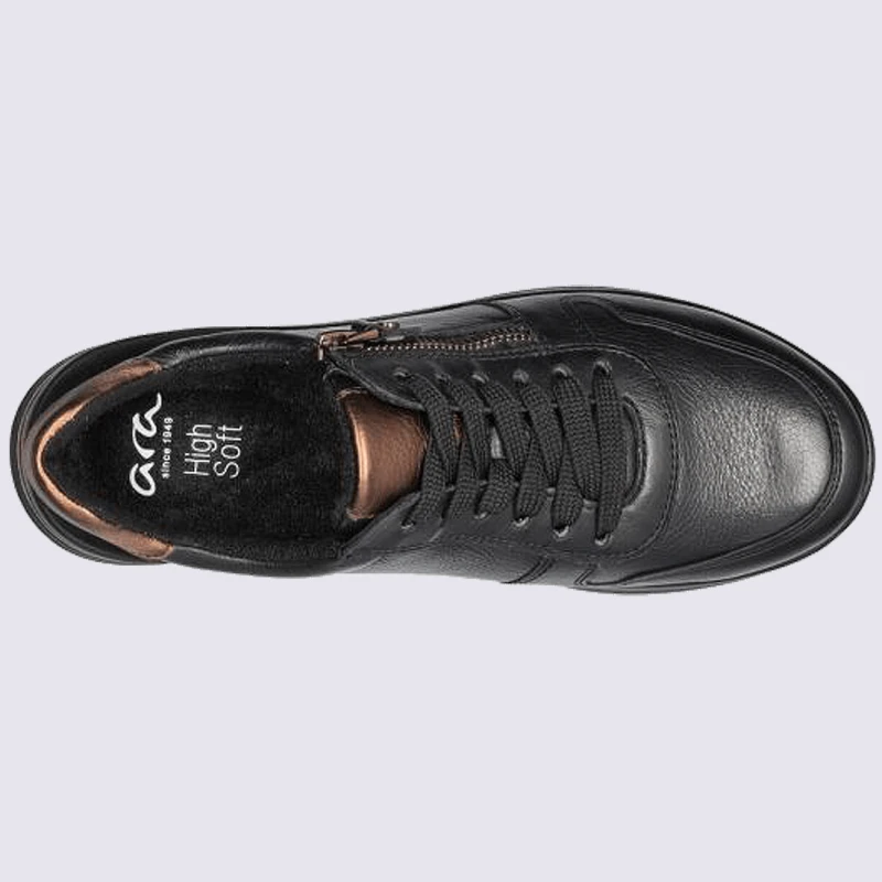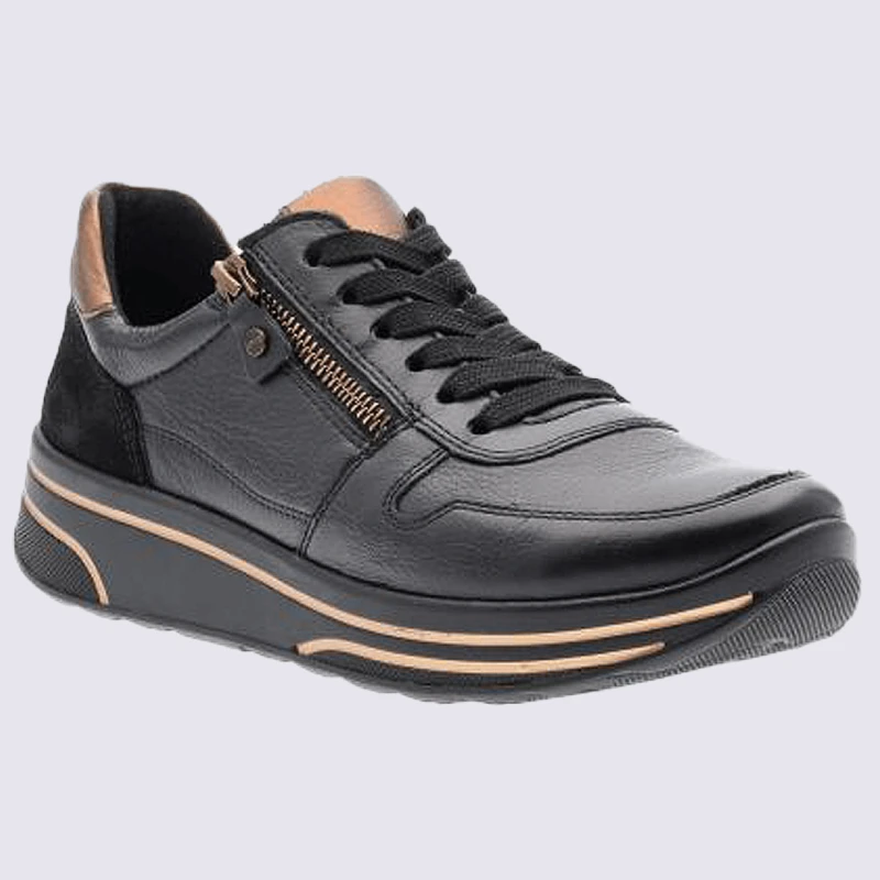Baskets Ara, Baskets Ă Zip Sportives Femme En Cuir Noir Et Marron
