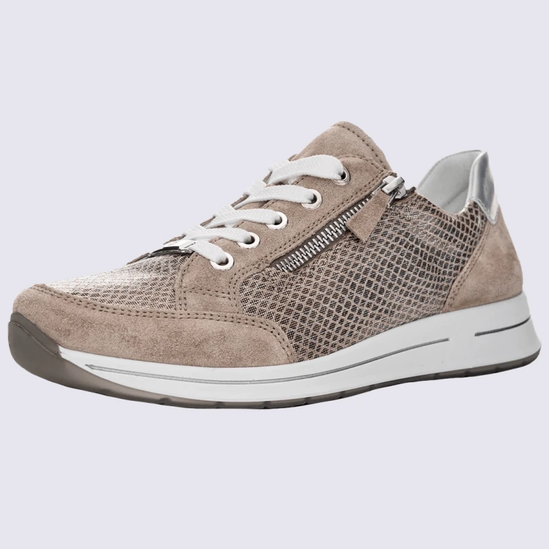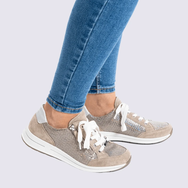 Apportez une touche de raffinement et de bien-être à votre garde-robe avec les baskets Ara Osaka Cachemire. Conçues pour un confort absolu, elles combinent une tige en suède souple et des empiècements en maille respirante, offrant un ajustement parfait et un look moderne. La semelle compensée ultra-légère assure un excellent amorti, tandis que le zip latéral facilite l’enfilage. Parfaites pour une allure à la fois chic et décontractée ! Découvrez la collection de la marque Ara sur igert.fr !