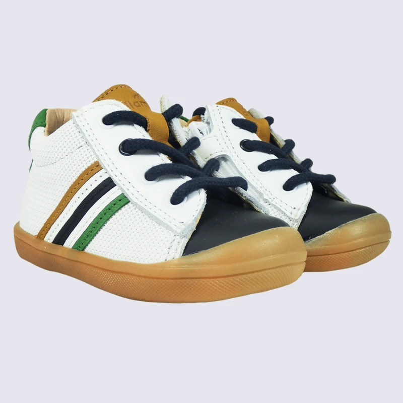 Baskets Bellamy, Baskets à Lacets Et Zip Bandes Colorées Garçons En Cuir Marine Blanc