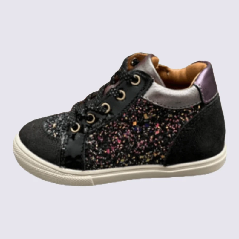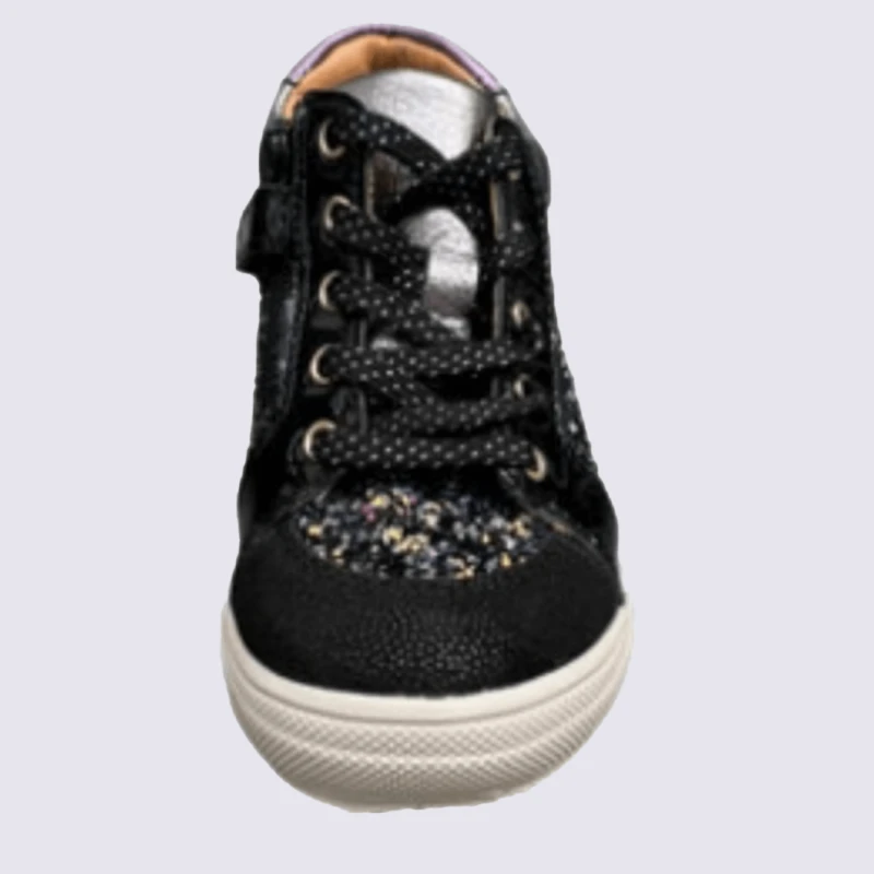 Baskets Bellamy, Baskets Ă Lacets Fille Motif Grain En Textile Noir