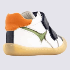 Baskets Bellamy, Baskets à Velcro Garçons En Cuir Blanc/bleu/vert
