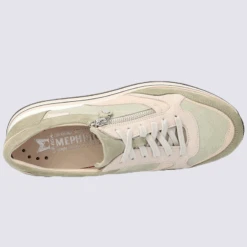 Baskets Mephisto, Baskets à Talons Compensés Femme En Cuir Velours Kaki Clair
