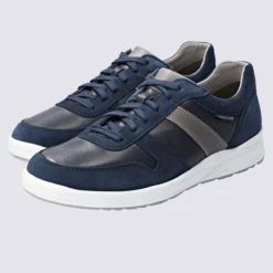 Baskets Mephisto, Baskets Confortables Homme En Cuir Velours Marine Et Noir