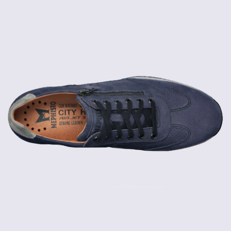 Baskets Mephisto, Baskets élégantes Homme En Cuir Navy