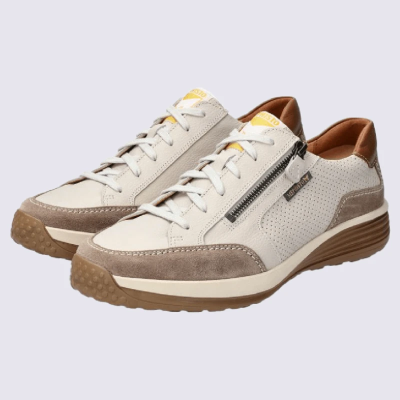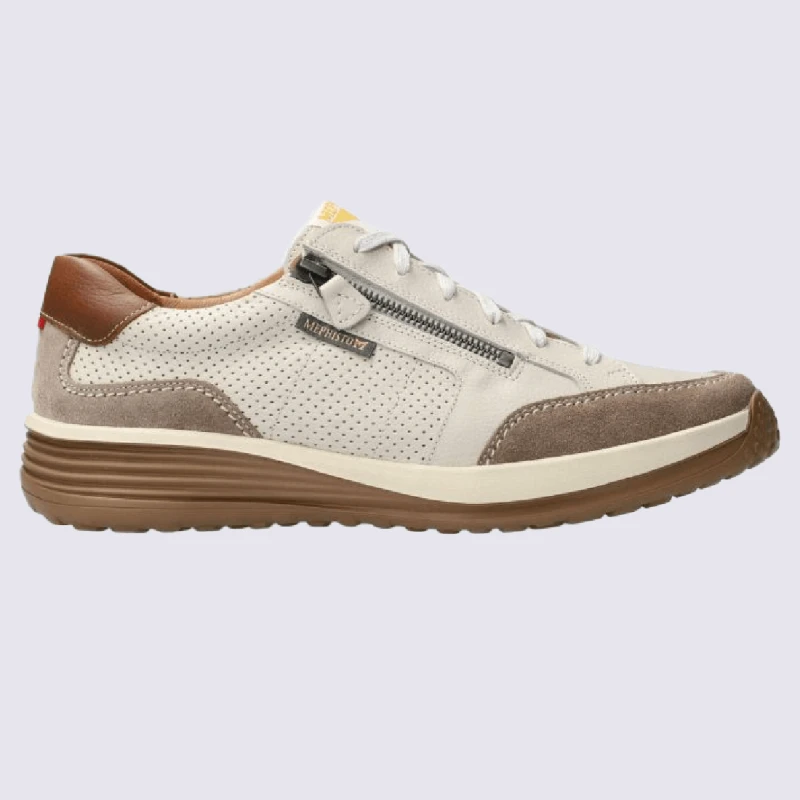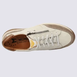 Baskets Mephisto, Sneakers élégantes Homme En Cuir Lisse Creme/brun