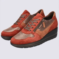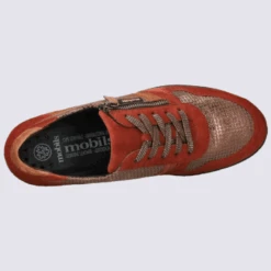 Baskets Mobils, Baskets Compensées Femme En Cuir Rouge/orange