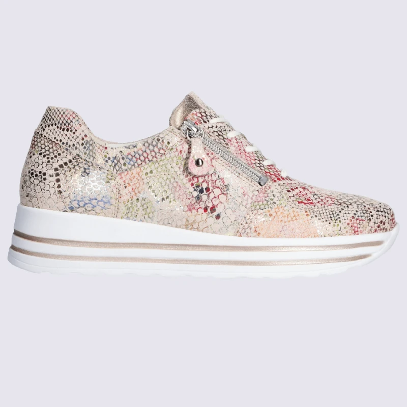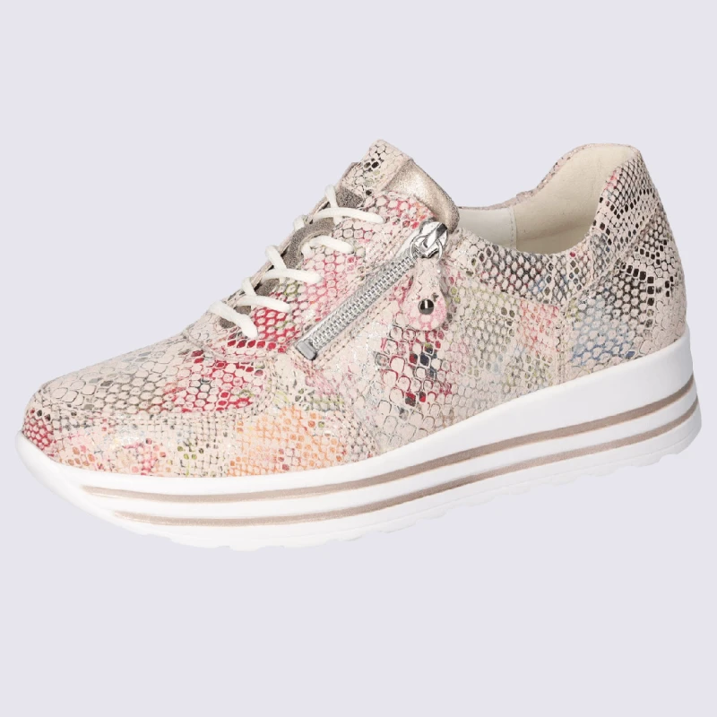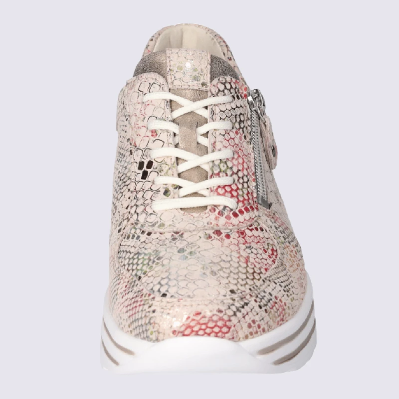 Baskets Waldlaufer, Baskets Confortables Zippées Femme En Cuir Rose Or Clair