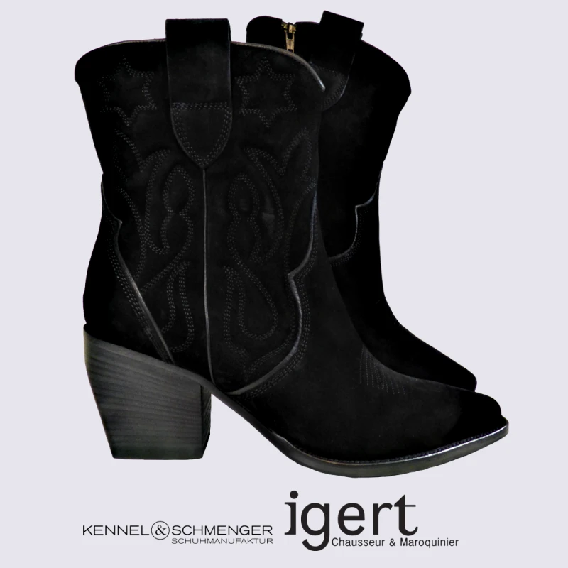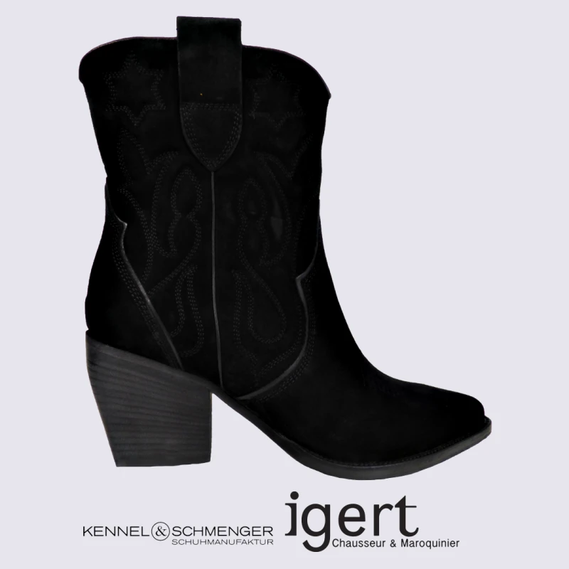 Bottes K&S, Bottes Look Cow-boy Femme En Cuir Nubuck Noir
