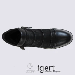 Botillons en cuir noir de la marque Kdopa Ouverture par glissière des 2 côtés Aspect plissé à l’avant de la chaussure Talon : 3 cm Composition : Cuir Livraison gratuite sous 2 à 4 jours Référence : Rouen noir