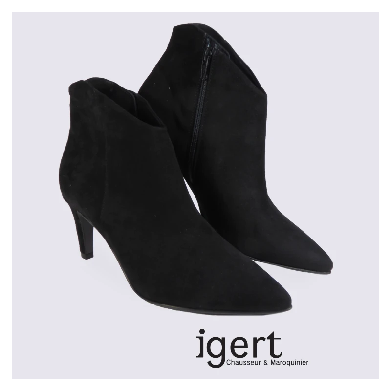 Bottines à talon aiguille noir de la marque K&S Modèle tendance Fermeture par glissière Talon : 7,5 cm  Composition : Intérieur et extérieur cuir Référence : 70020 noir