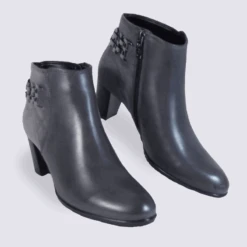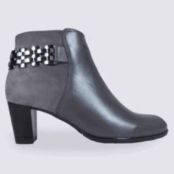 Bottines Ara En Cuir Gris Avec Chaîne Décorative Tendance