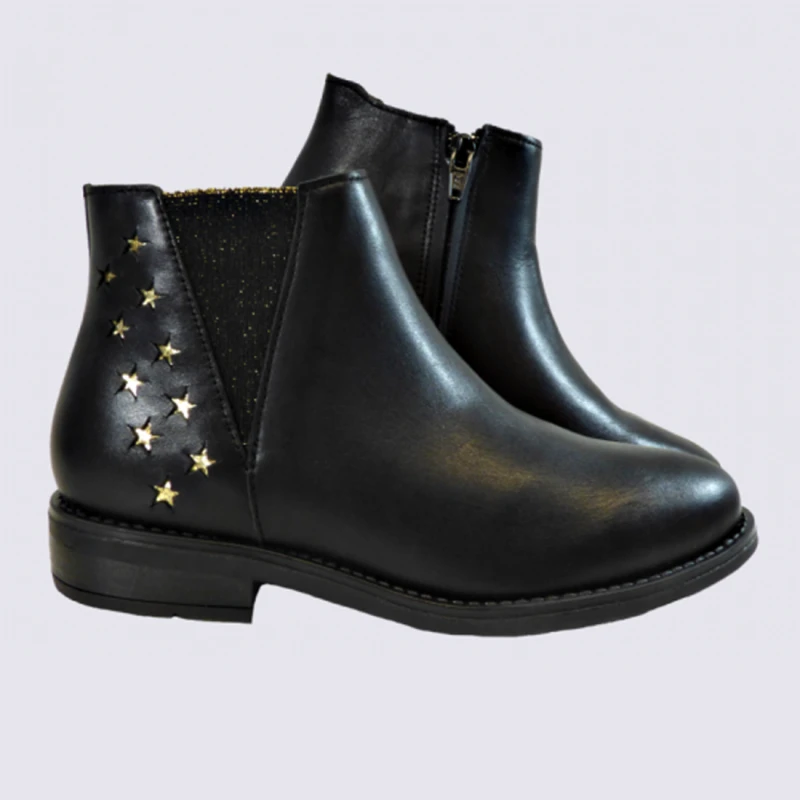 Bottines Bellamy, Bottines étoiles Dorées Filles En Cuir Noir