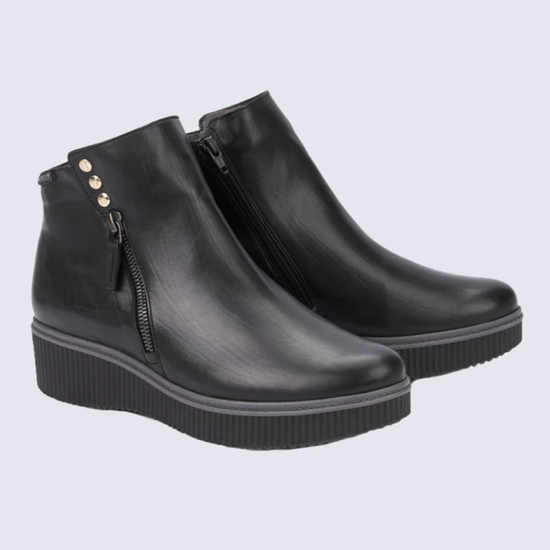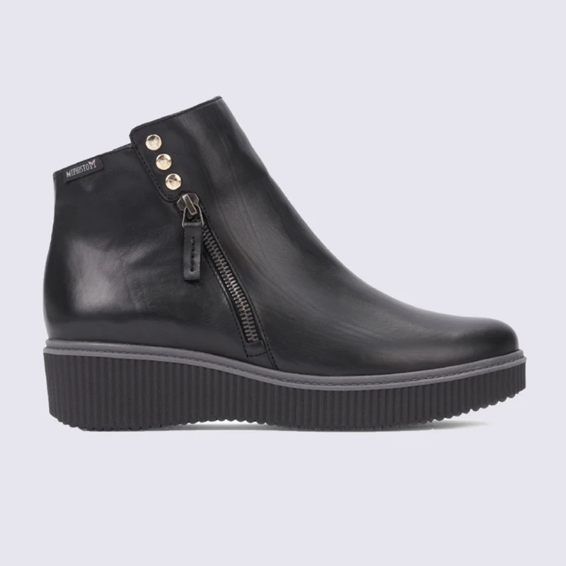 Bottines Compensées Mephisto En Cuir Lisse Noir