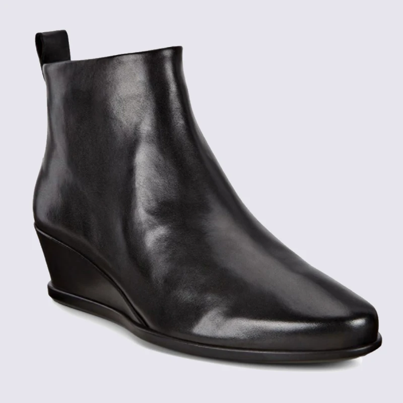 Bottines Ecco, Bottines Compensées Tendances Femme En Cuir Noir