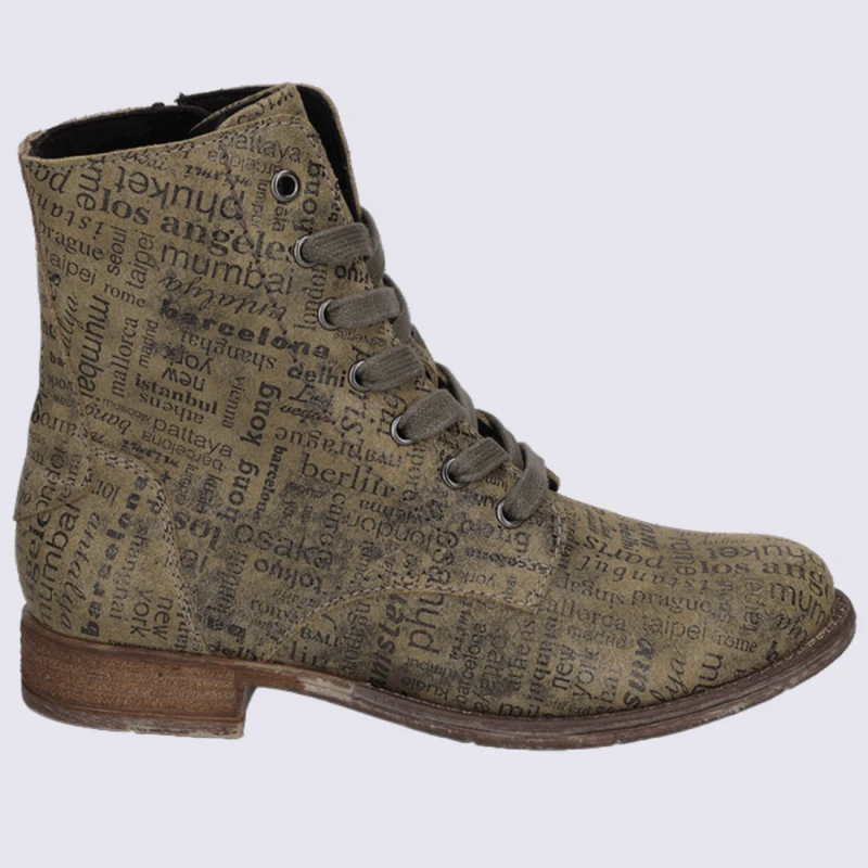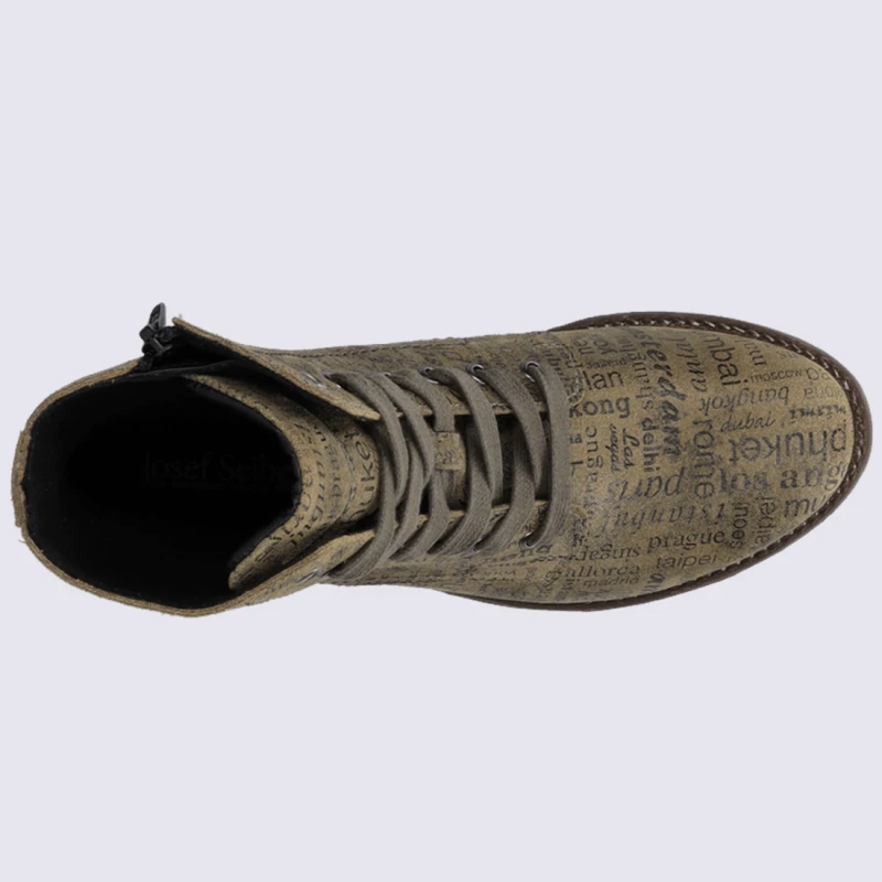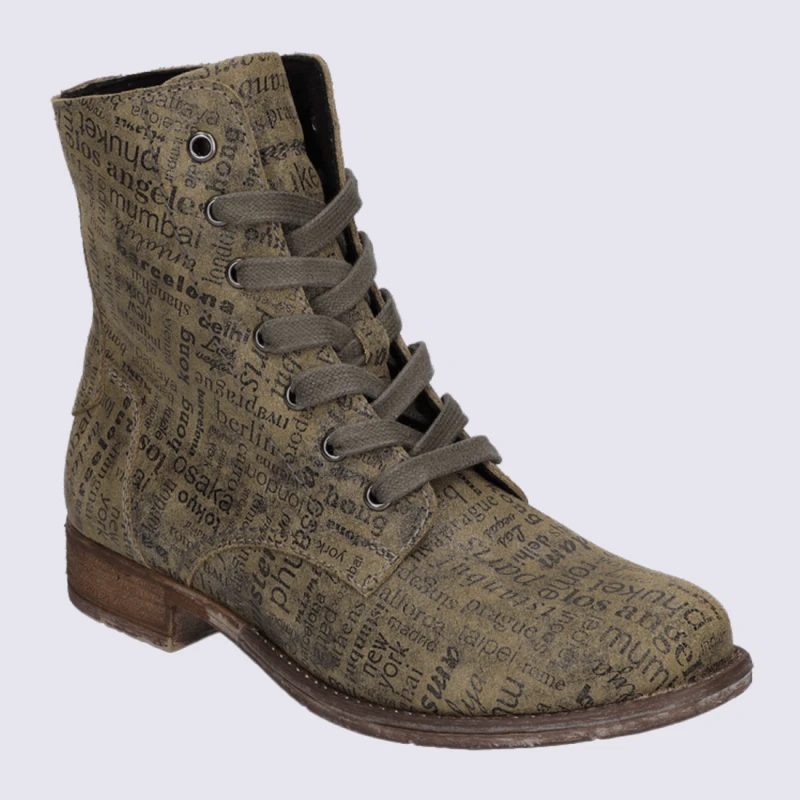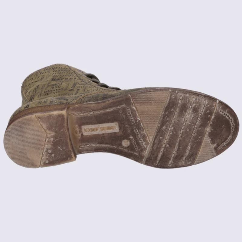 Bottines Josef Seibel, Bottines à Lacets Femme Imprimé En Cuir Olive