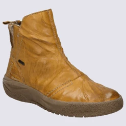 Bottines Josef Seibel, Bottines Chaudement Doublées Zippées Femme En Cuir Jaune Safran