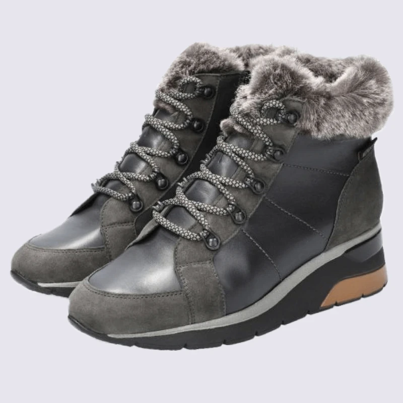 Bottines Mephisto, Bottines à Talon Compensé Fourrée Femme En Cuir Gris