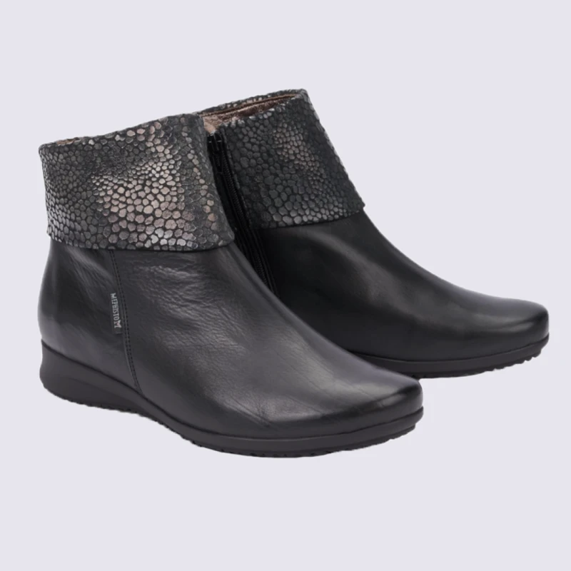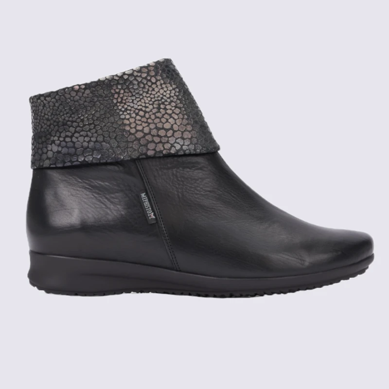 Bottines Tendance Pour Femme Mephisto En Cuir Noir Et Argent