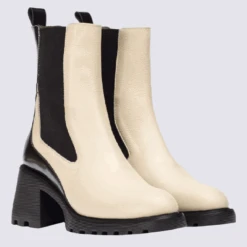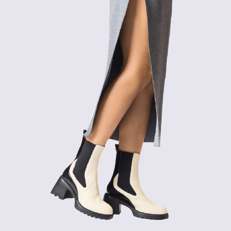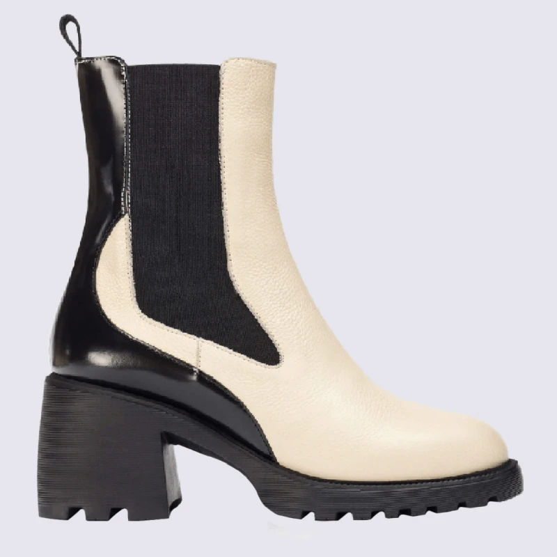 Bottines Wonders, Bottines Chelsea Ă Talon Femme En Cuir Noir Et Beige