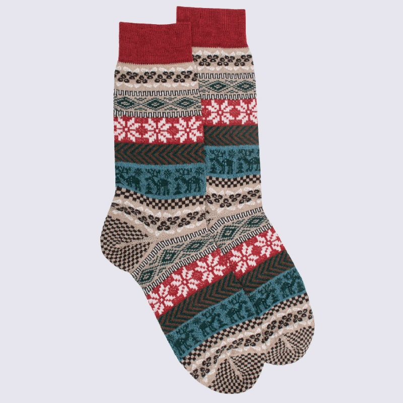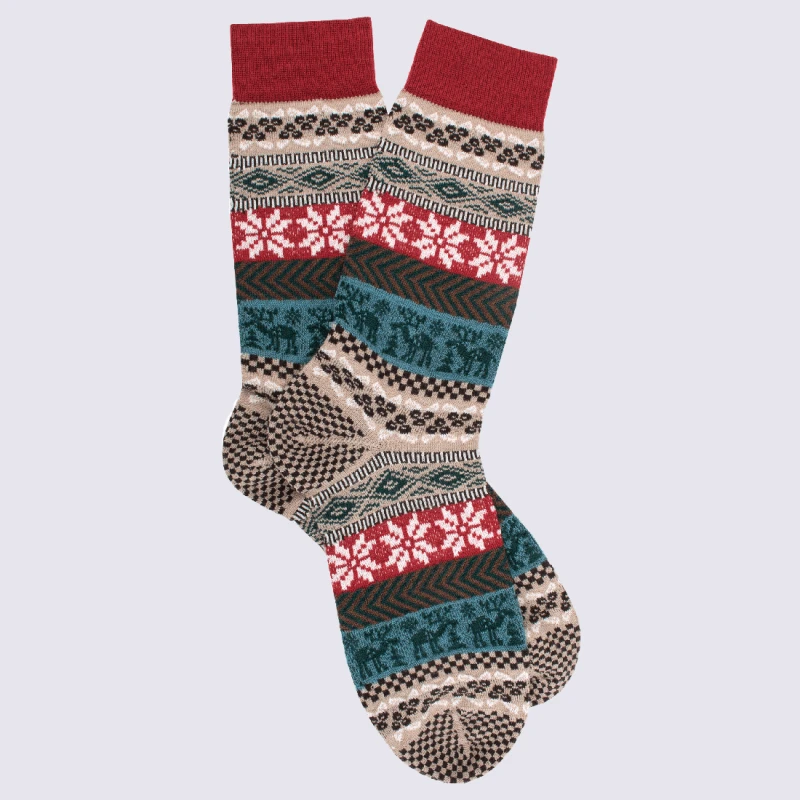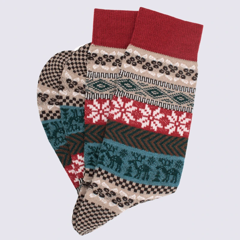 Chaussettes Doré Doré, Chaussettes à Motif Hivernale En Laine Homme Rouge Et Beige