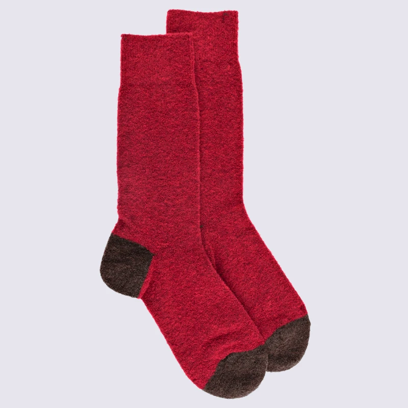 Chaussettes Doré Doré, Chaussettes En Laine Polaire Bicolore Homme Rouge/brun