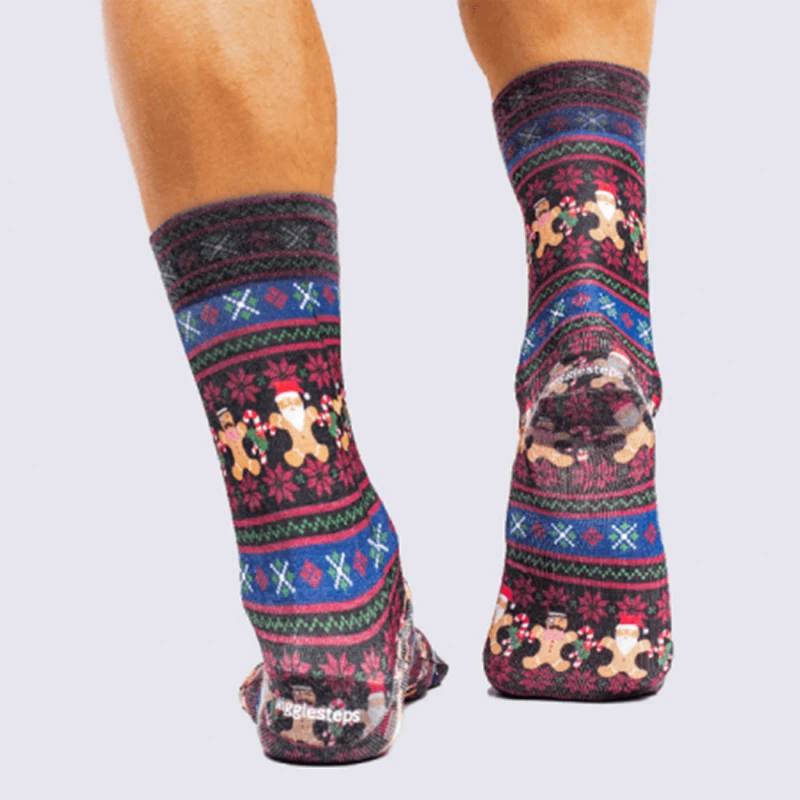Chaussettes motifs bonhommes en pain d’Ă©pices pour homme de la marque Wigglesteps Modèle sans couture Bords sans compressions Taille unique : 41-46 Composition : 40% Coton, 40% Polyester, 16% Polyamide, 4% Elasthanne Livraison gratuite sous 2 Ă 4 jours RĂ©fĂ©rence : 02012 noir