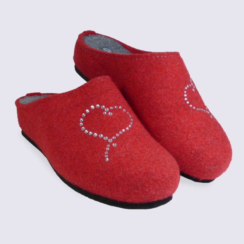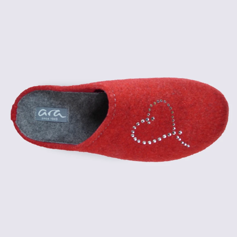 Chaussons Ara En Feutre Rouge Motif Coeur En Strass