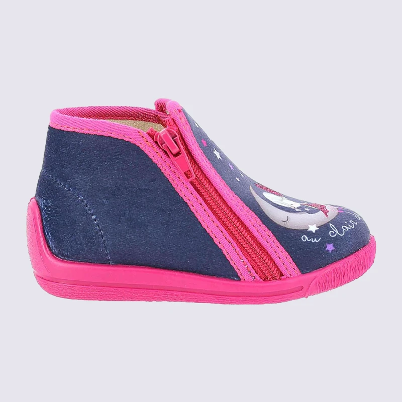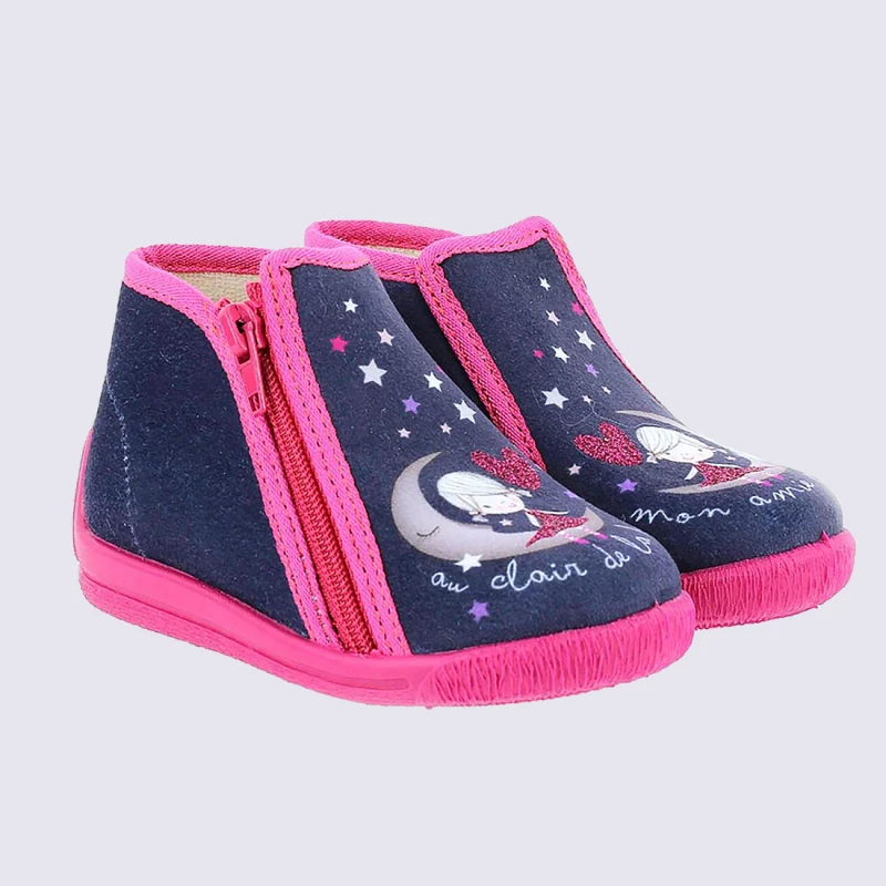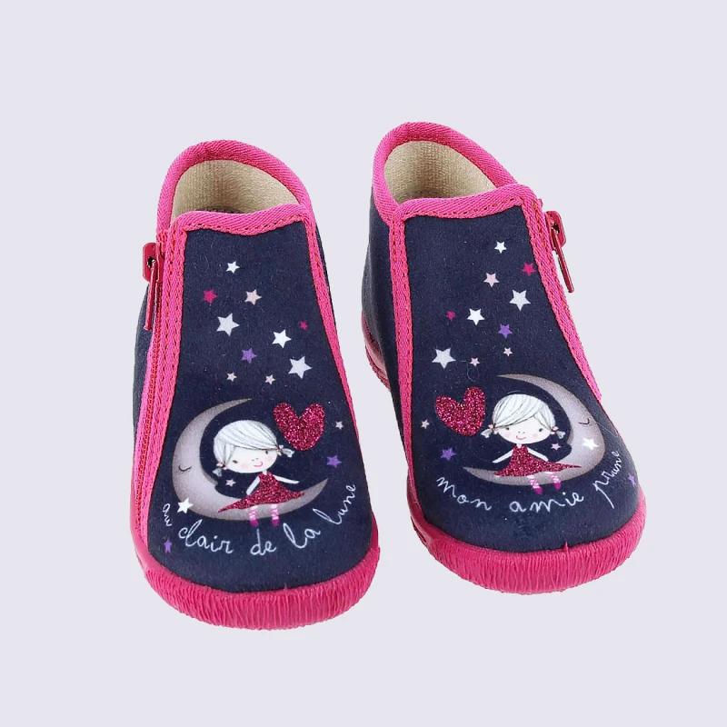 Chaussons Bellamy, Chaussons Bébé Fille Motif Lune Marine