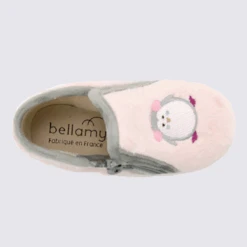 Chaussons Bellamy, Chaussons Bébé Fille Motif Pingouin Rose