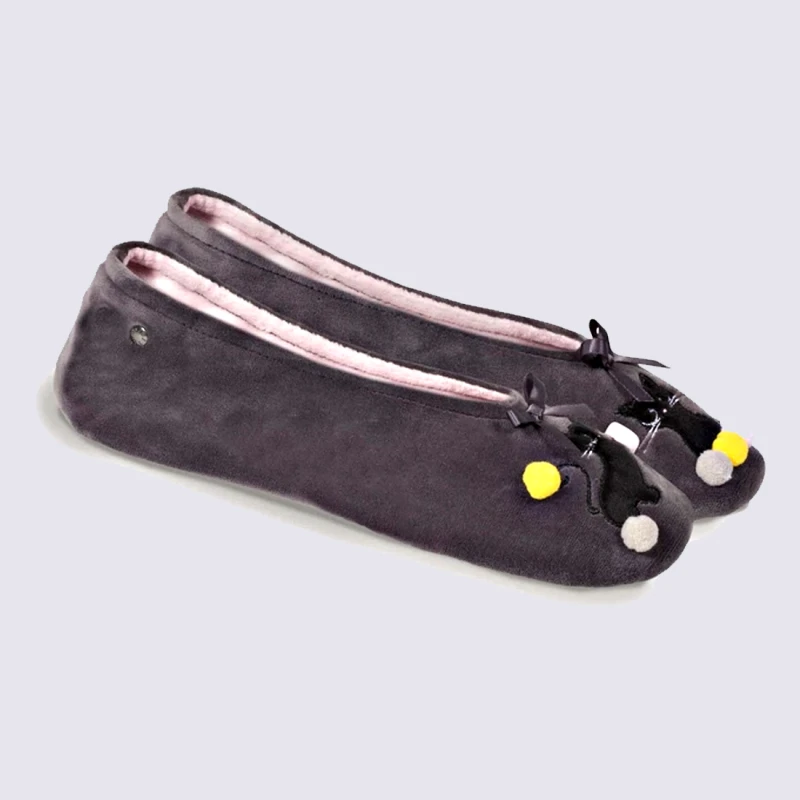 Chaussons Isotoner, Chaussons Ballerines Chat Femme Gris