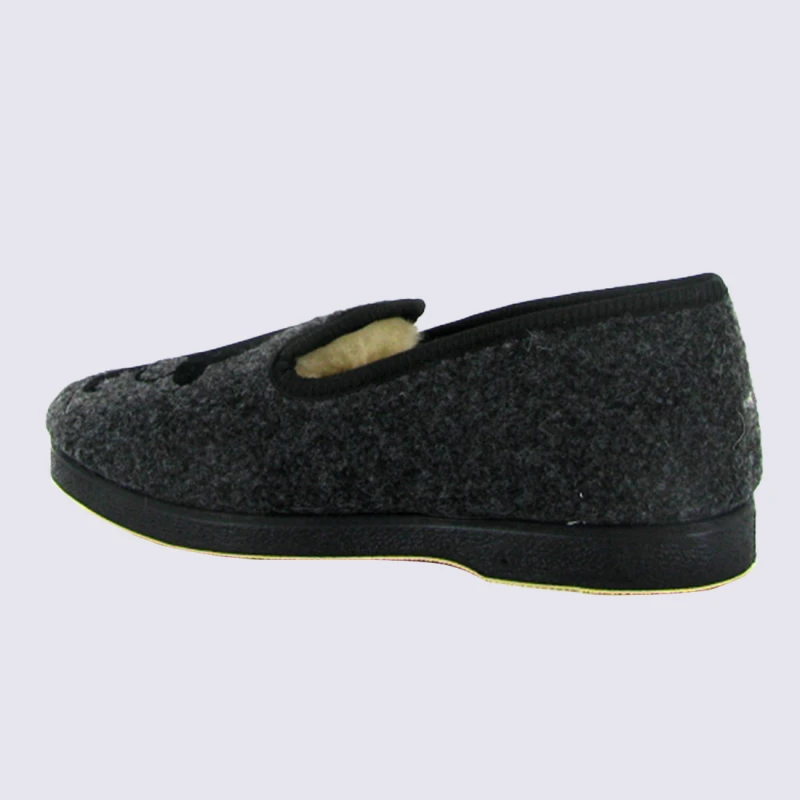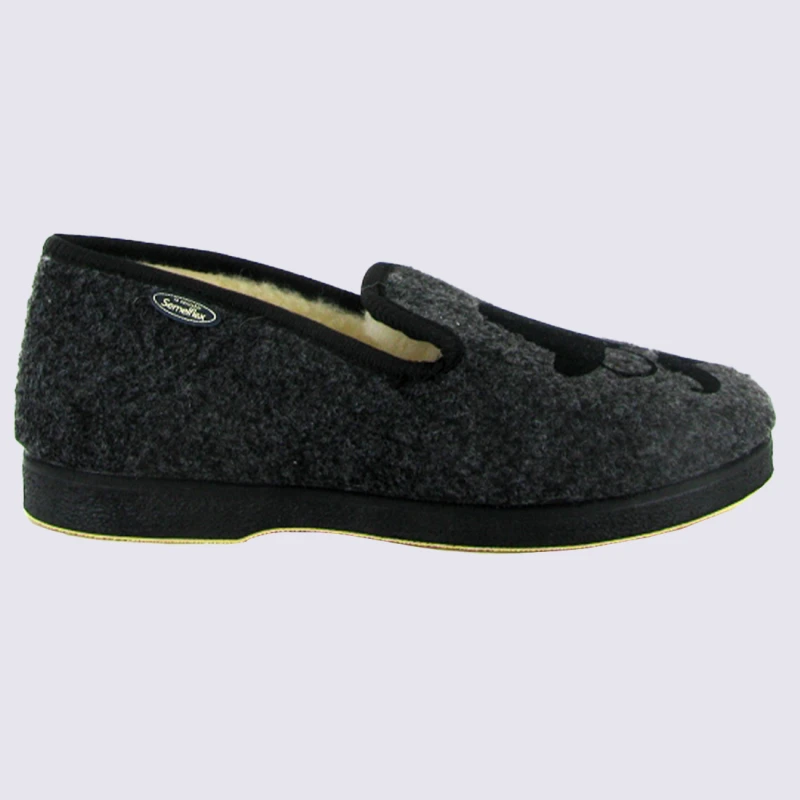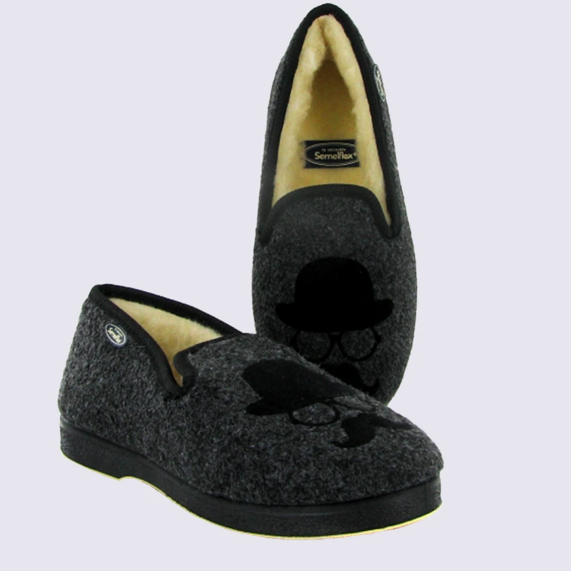 Chaussons Semelflex, Chaussons Charentaises Chaude Motif Moustache Et Lunettes Homme Feutre Anthracite