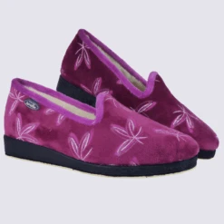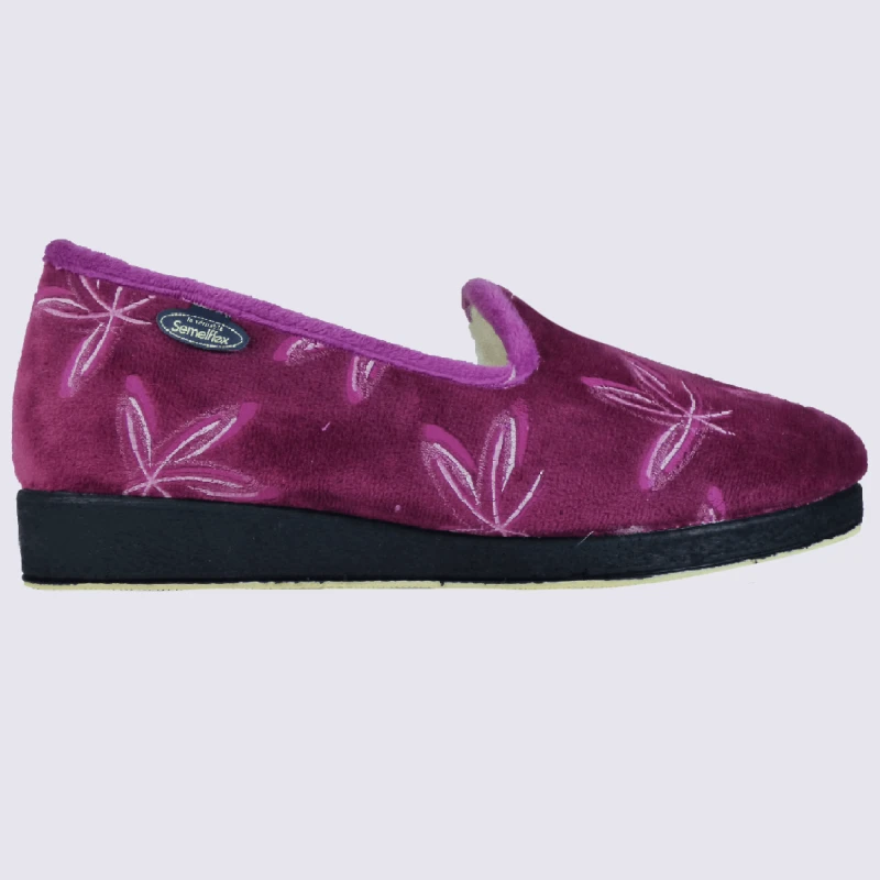Chaussons Semelflex, Chaussons Charentaises Fourrés Motif Floral Femme Bordeaux