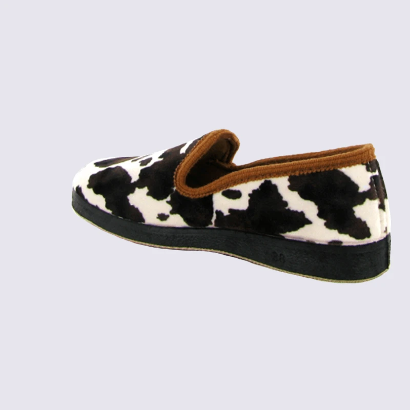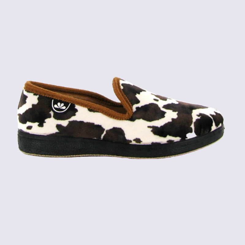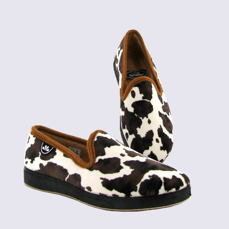 Chaussons Semelflex, Chaussons Charentaises Fourrés Motif Peau De Vache Femme En Textile Marron