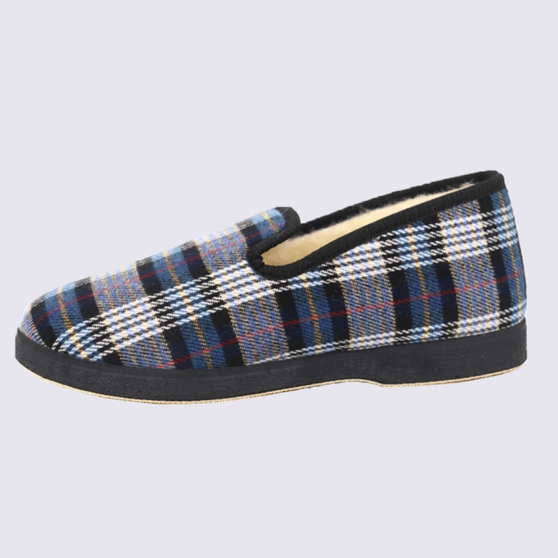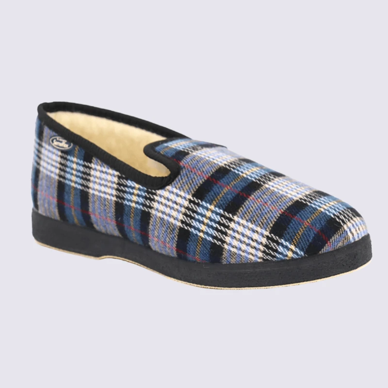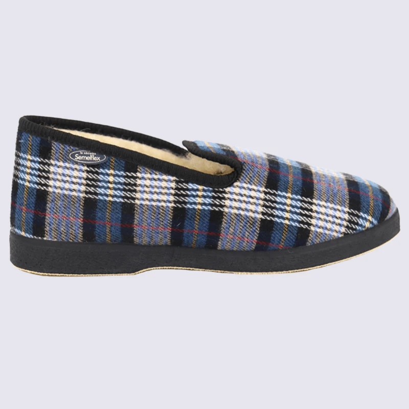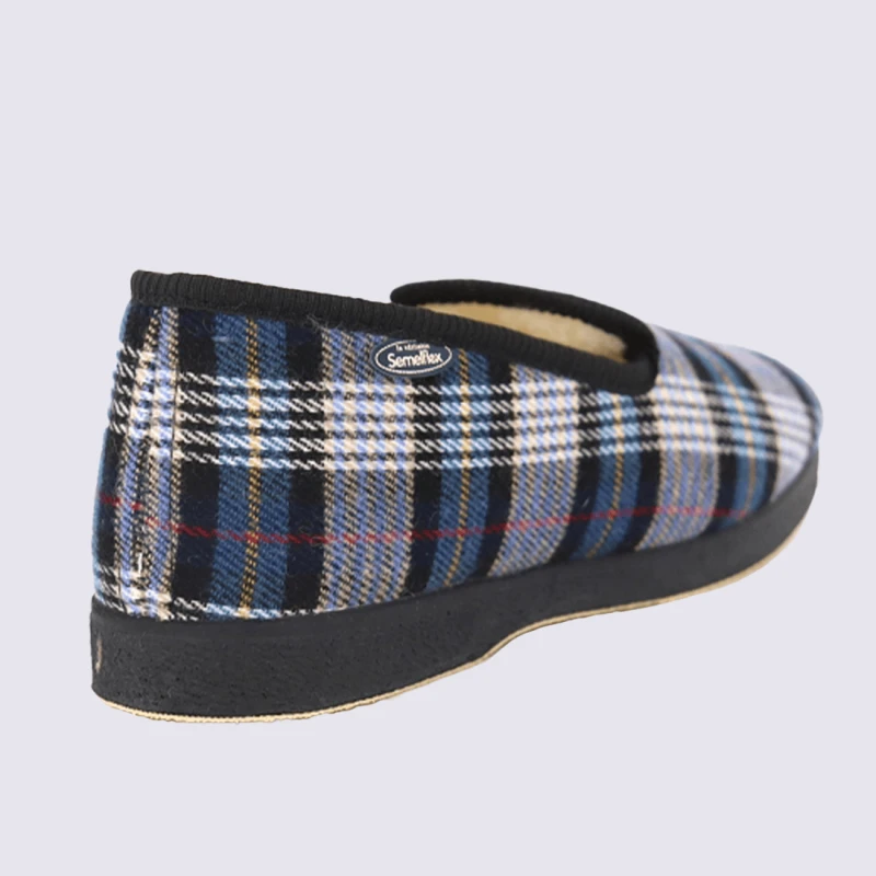 Chaussons Semelflex, Chaussons Charentaises Fourrés Motif Rayé Homme En Textile Marine