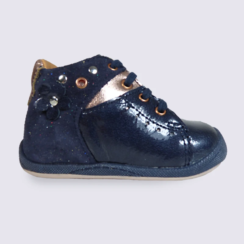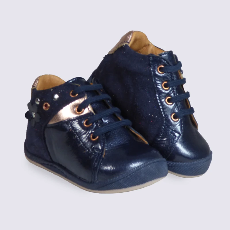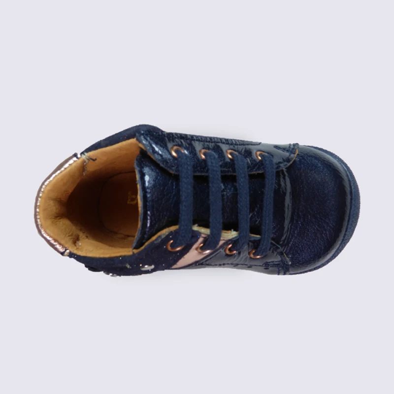 Chaussure Babybotte Bébé Fille En Cuir Vernis Bleu