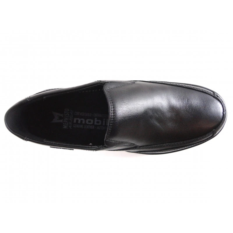 - Chaussure Mephisto en cuir noir. Loafer, s’enfile facilement grâce Ă ses Ă©lastiques prĂ©sent sur chaque cĂ´tĂ© de la chaussure.