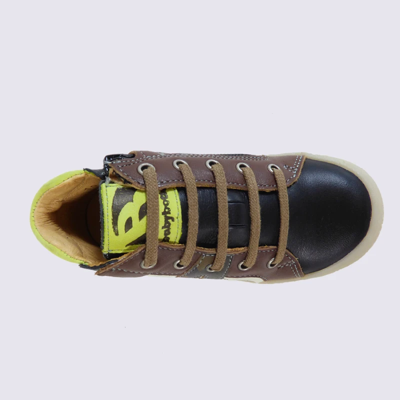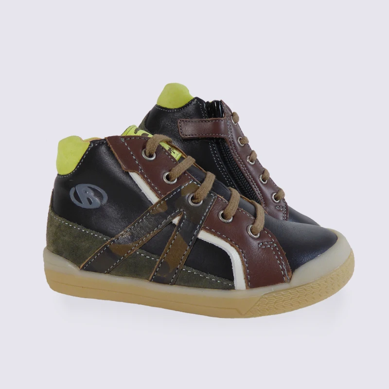 Chaussures en cuir pour bébé garçon de la marque Babybotte Semelle en gomme Fermeture à glissière sur le côté Renfort en gomme à l’avant et à l’arrière de la chaussure Composition : Cuir extérieur et intérieur Livraison gratuite sous 2 à 4 jours Référence : B3 sport noir