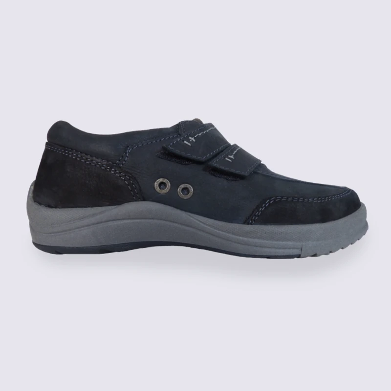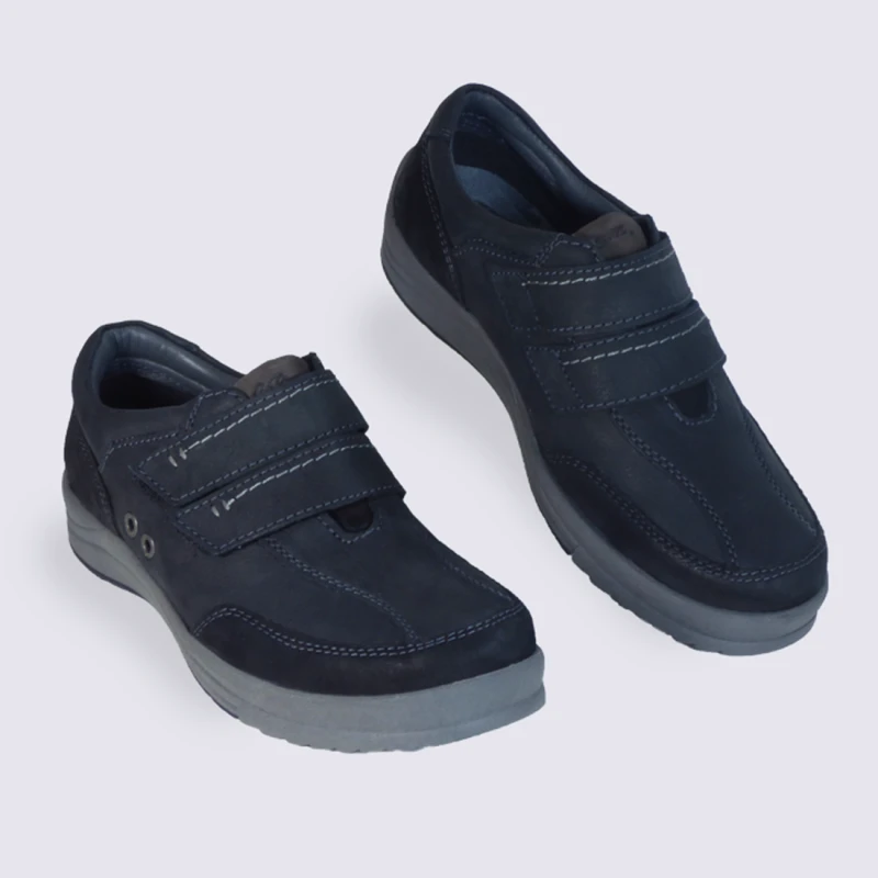 Ouverture par doubles velcros Surpiqûres apparentes Semelle intérieure amovible Grande largeur Semelle extérieur avec absorbeur de chocs Composition: Cuir Livraison gratuite Réference : 27110 noir