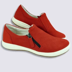 Chaussures Josef Seibel, Chaussures à Glissière Femme En Cuir Rouge