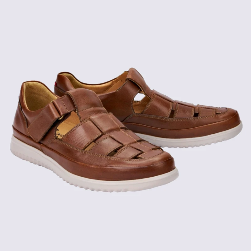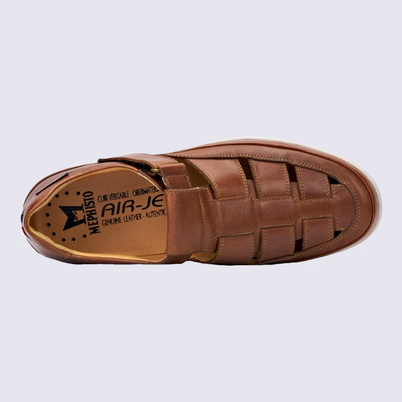 Chaussures Mephisto, Chaussures Ouvertes Homme En Cuir Noisette