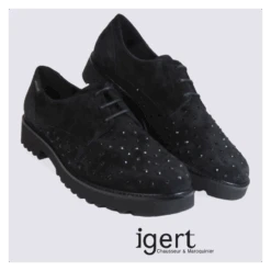 Derby Pour Femme Mephisto En Cuir Noir Et Strass