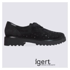 Derby Pour Femme Mephisto En Cuir Noir Et Strass